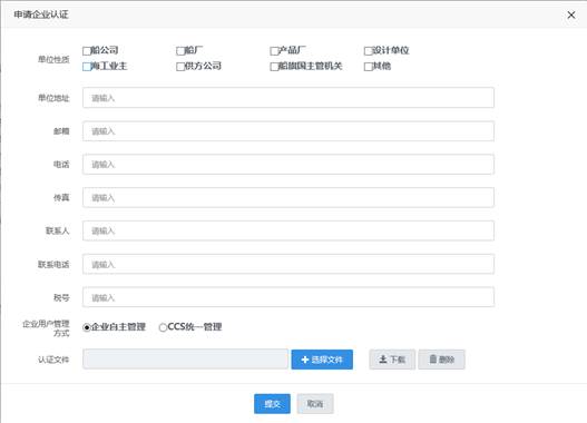 输入各项认证信息,选择认证文件,点击“提交”按钮,系统提示提交成功,等待相关人员审核。