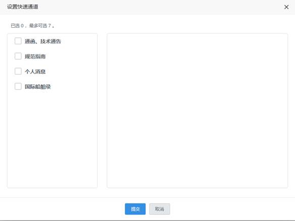 勾选左侧需要的选项,点击提交按钮,快速通道显示如下图所示: