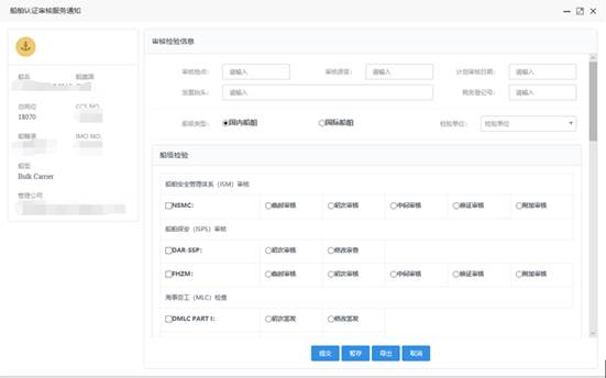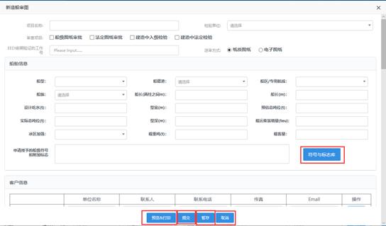 根据需要的船舶审图服务点击相应的菜单按钮,这里以“新造船审图”为例,点击“新造船审图”,出现如下图所示界面: