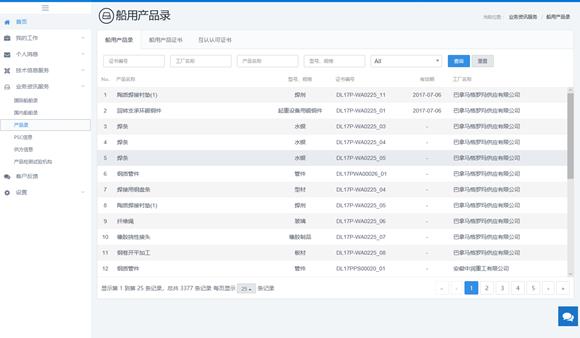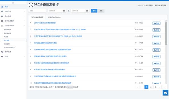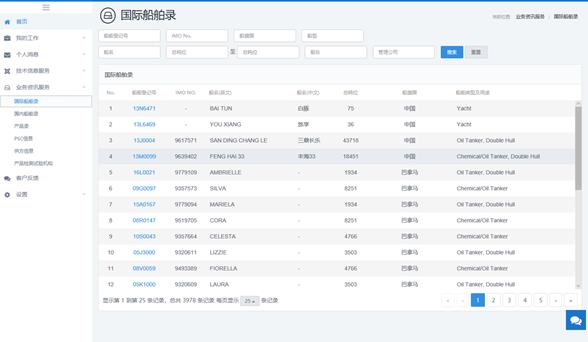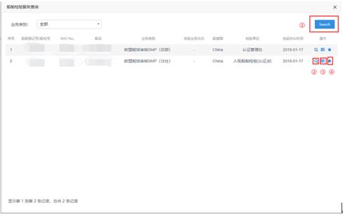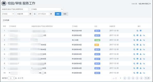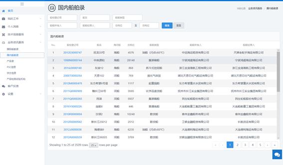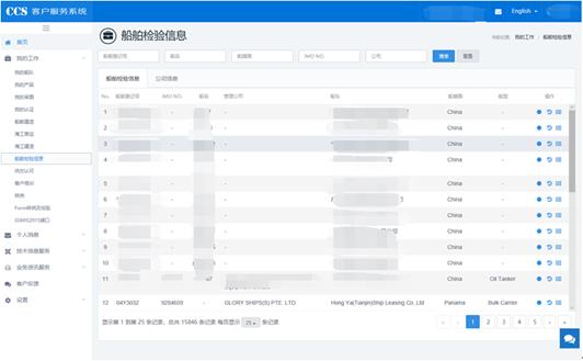 点击我的工作-船舶检验信息菜单,进入页面,可查看船舶检验信息列表。