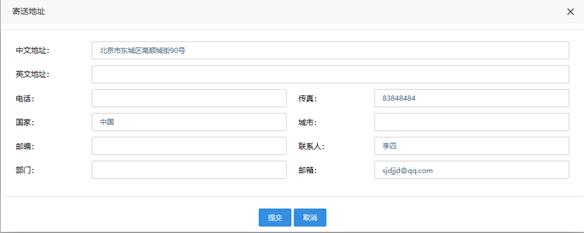 修改寄送地址并点击提交按钮,可对寄送地址进行修改