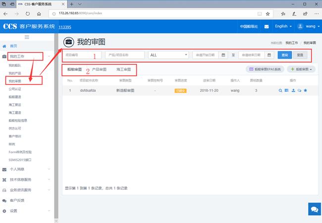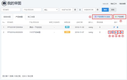 2. 点击分页按钮,可以在船舶审图,产品审图,海工审图间切换。