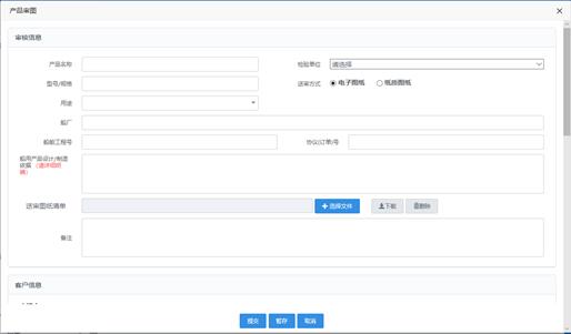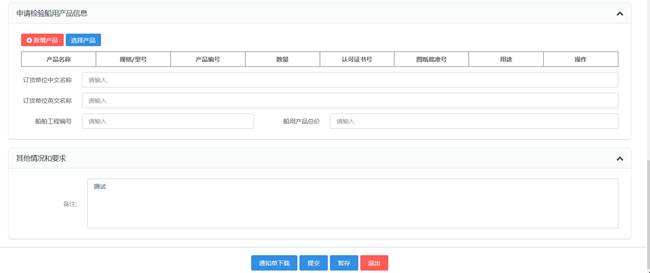 申请检验的船用产品信息说明:申请时产品信息需要写明产品是否做个认可、是否完成审图,并描述清楚产品的名称、型号规格等