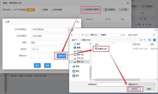 点击“新增或补充图纸”按钮,如下图所示上传图纸或参考资料: