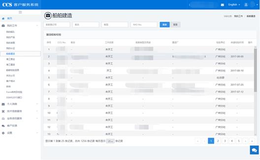 点击我的工作-船舶建造菜单,进入页面,可查看船舶建造列表。