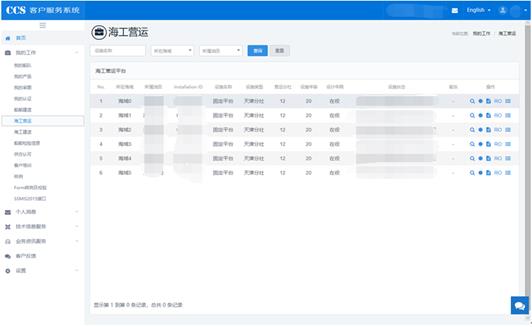 点击我的工作-海工营运菜单,进入页面,可查看海工营运列表。