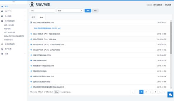 点击技术信息服务-规范/指南菜单,进入页面,可查看规范/指南列表。