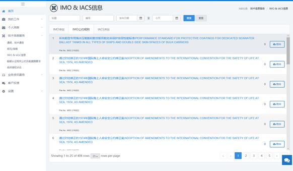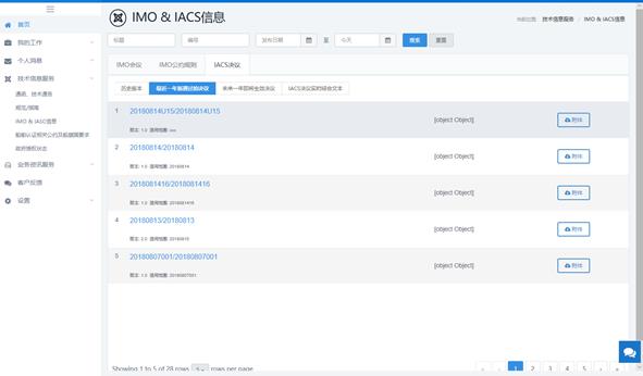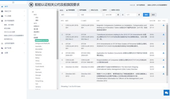 点击“IMO公约规则”,输入检索条件,检索自己关注的IMO公约规则,查看规则相关信息,下载公约文件。