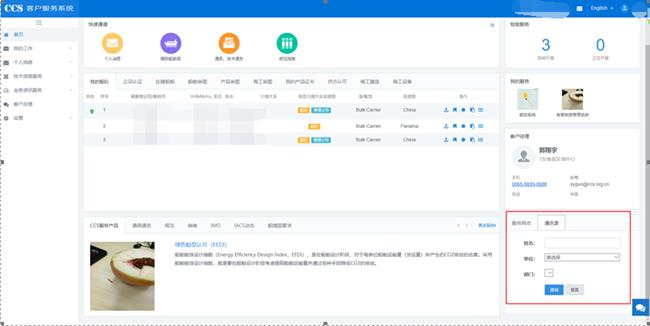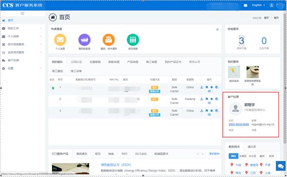 船厂、船东、海工业主用户,查看与自己企业对接的CCS客户经理联系信息,供咨询使用。
