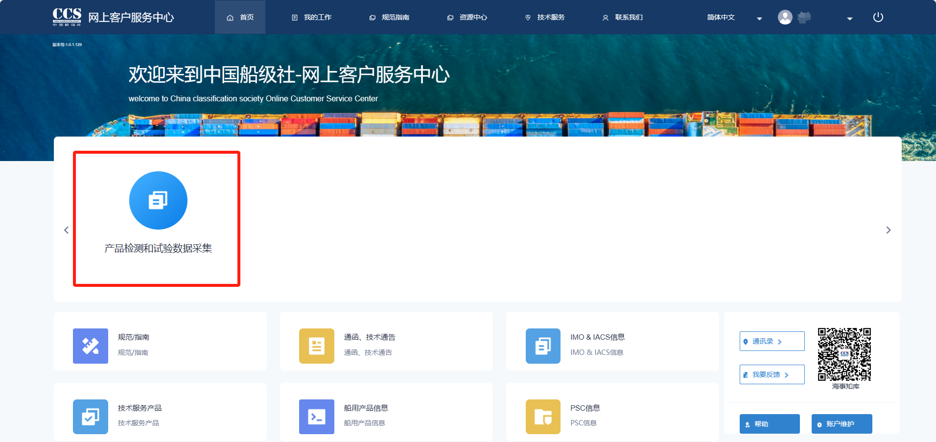 方式一:登录后首页中找到【产品检测和试验数据采集】,点击即可进入产品检测和试验数据采集页面;