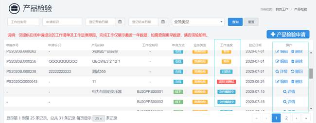 点击主页右上方的“检验服务”统计信息,接口查看即将开展的工作及正在开展的工作。可查看正在开展工作的工作详情,工作进度等信息。