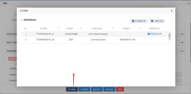 如果证书格式为:PL. 等效证明文件时,客户可以通过【等效证明文件】功能批量上传等效证明书,验船师签批后的文件也在该处批量下载